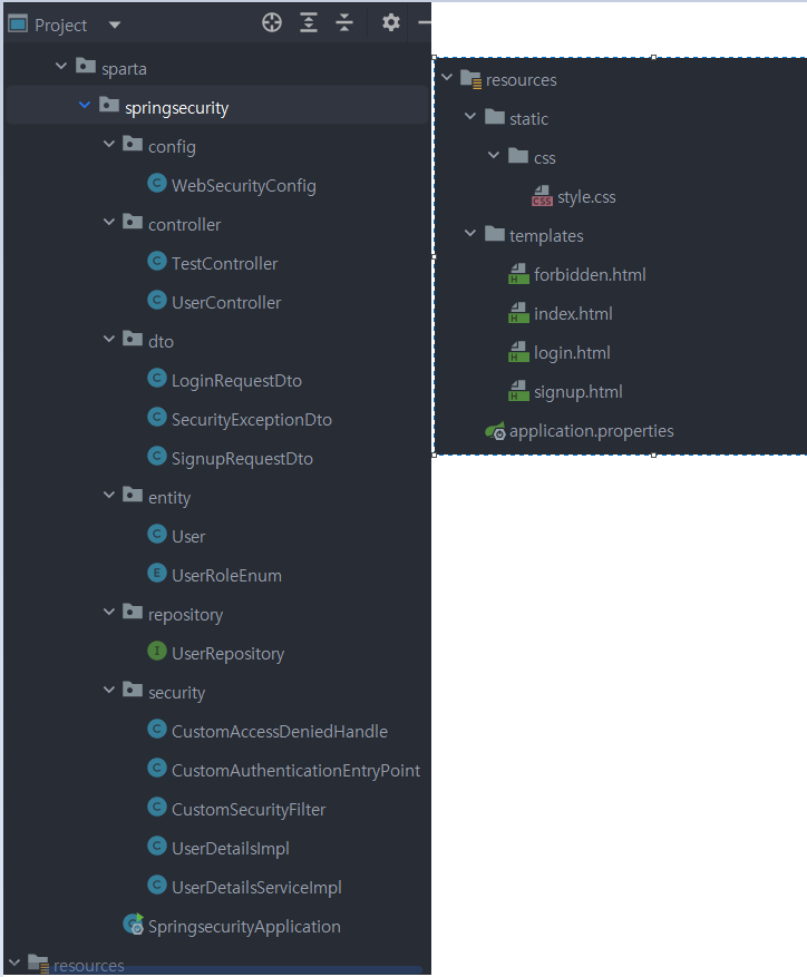Dto - SignupRequestDto / LoginRequestDto / SecurityExceptionDto