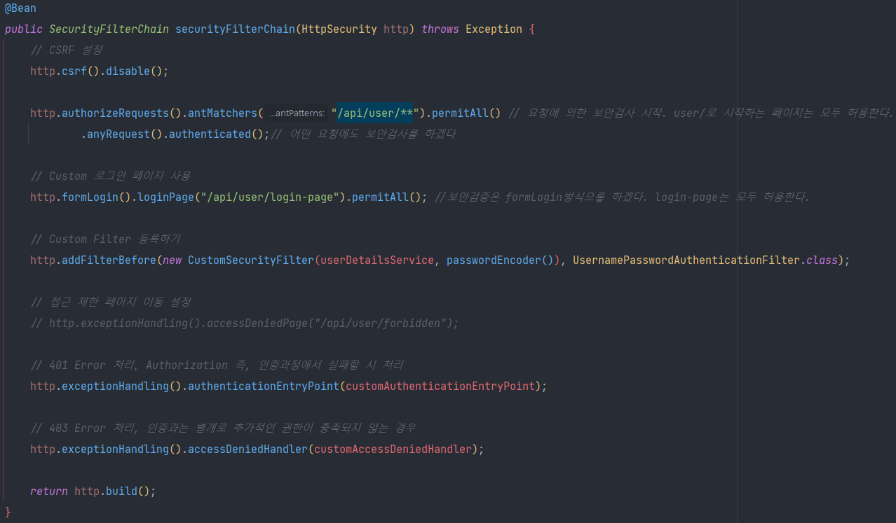 a. 해당 URI 요청은 permitAll 처리하고 사용자의 입력값으로 service에서 회원 인증을 진행한다. (비밀번호 일치여부 등)