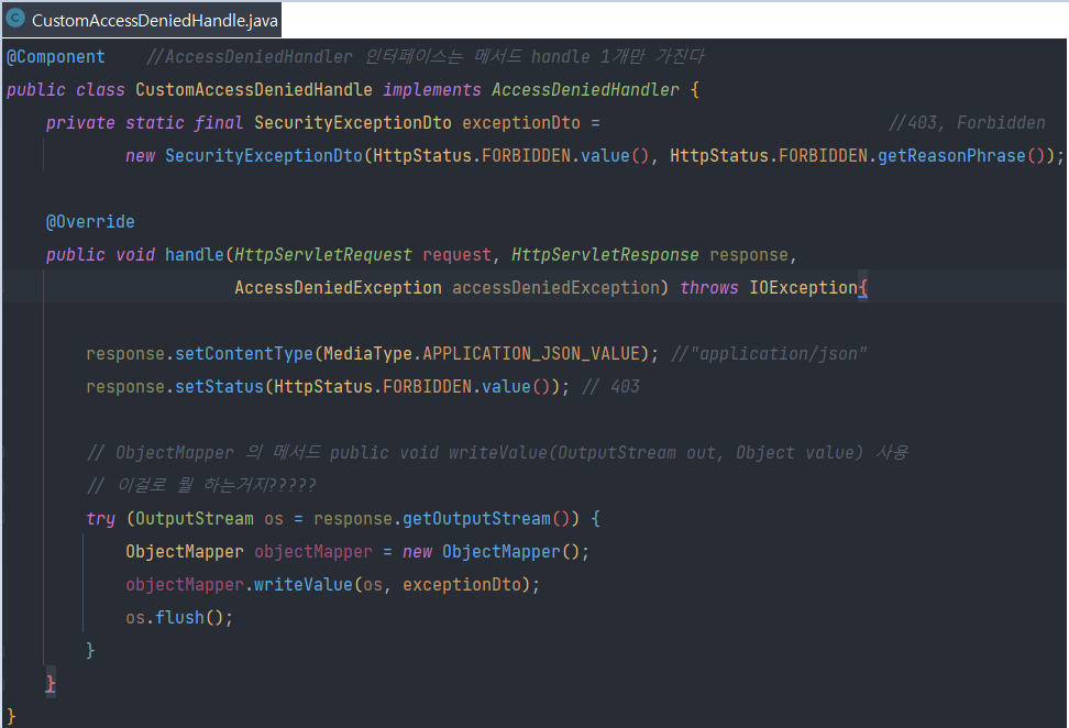 AccessDeniedHandler 에서 예외 처리하도록 제공