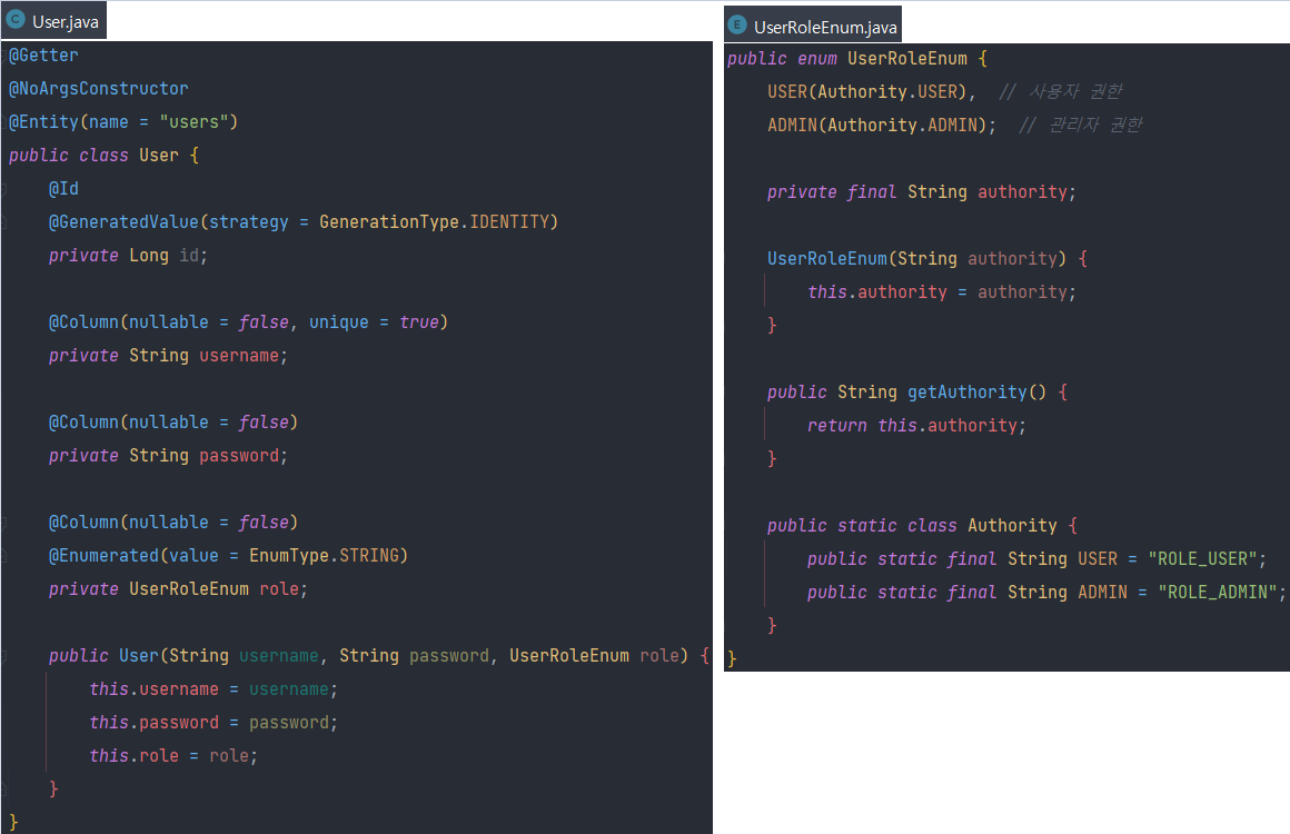 Entity - User / UserRoleEnum