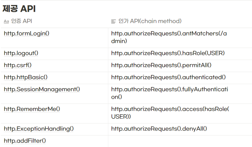 - Spring Security는 서비스 설정에 따라 필터를 내부적으로 구성한다.