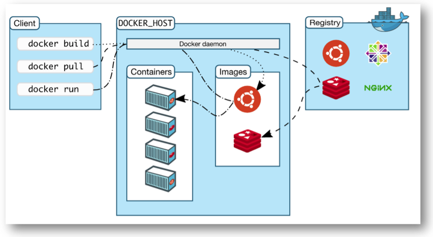 하나의 images로 유사한 여러개의 container를 만들 수 있다. Registry는 Docker hub이며 images의 저장소이다.