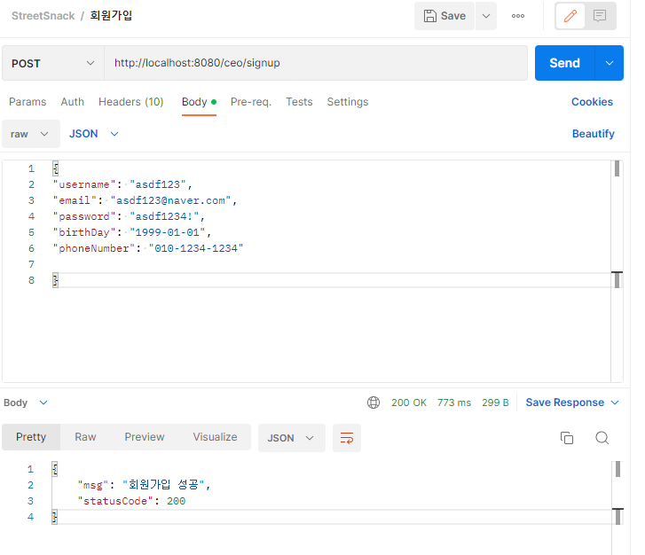 2. 개인프로젝트 회원가입 정보 PostMan에서 Post 할 시, 401에러발생