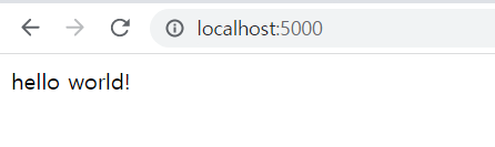 - 그럼 아래 창에 이렇게 뜰거고, 크롬에서 http://localhost:5000/ 으로 접속 후 Hello World! 보이면 성공!