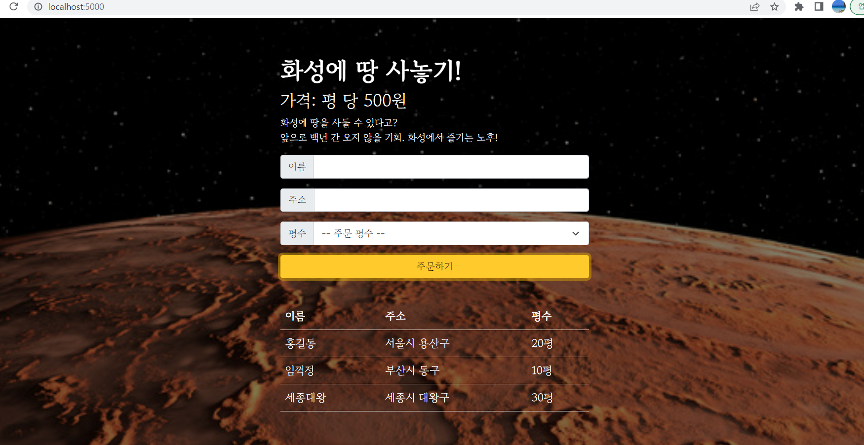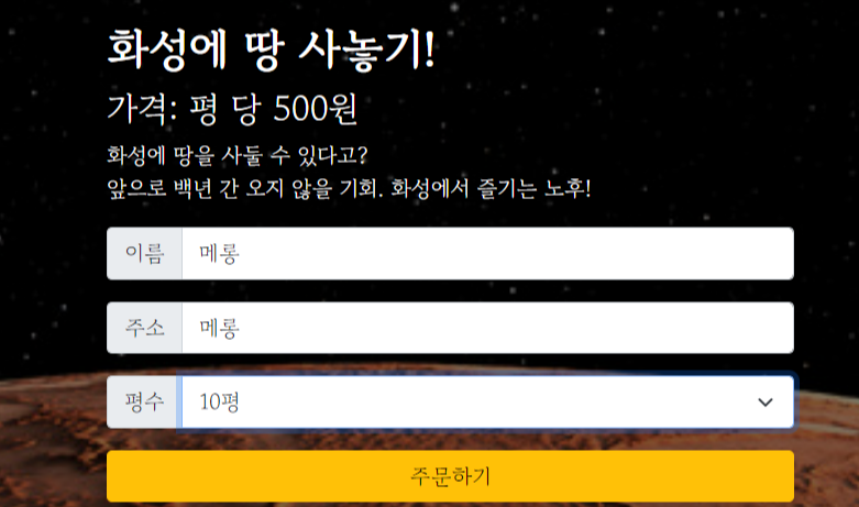 2. '화성에 땅사기' API를 만들고 클라이언트에 연결한다.