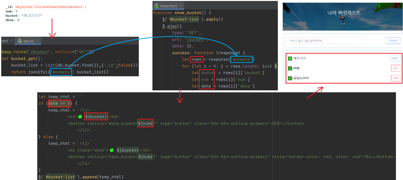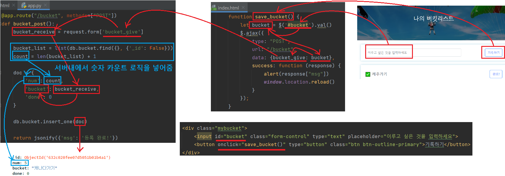 bucket_list = list(db.bucket.find({}, {'_id': False})) #⭐카운트를 위해 디비에서 데이터 한번 받아와야 해. 거기에 1을 더하면 현재 num이 되도록.