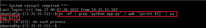 ps -ef | grep 'python app.py' | awk '{print $2}' | xargs kill