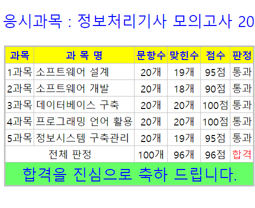 정처기 카페에서는 실전에서 푸는 시험은 이 모의점수의 -10점 정도가 나올 거라고 한다.