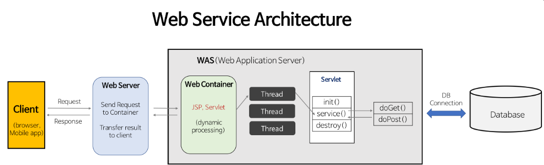 즉, WAS는 JSP, Servlet 구동 환경을 제공한다.