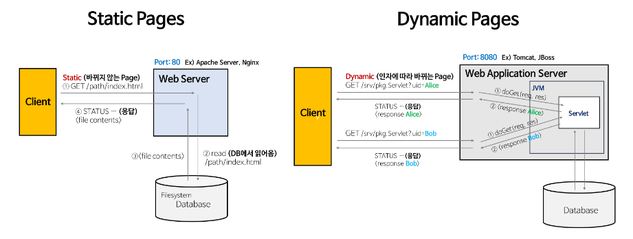 기존 웹에서는 웹서버로 정적자원만 반환을 하다가, 점점 동적 웹에 대한 수요가 커져갔다.