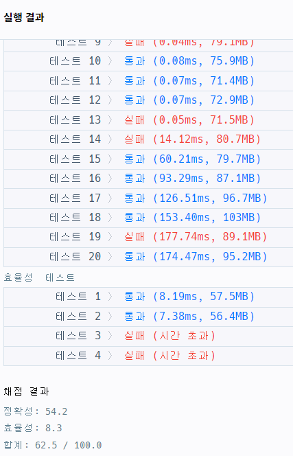 시간초과 및 일부 테스트케이스에서 실패가 떴다 ㅠㅠ