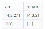 정수를 저장한 배열, arr 에서 가장 작은 수를 제거한 배열을 리턴하는 함수, solution을 완성해주세요. 단, 리턴하려는 배열이 빈 배열인 경우엔 배열에 -1을 채워 리턴하세요. 예를들어 arr이 [4,3,2,1]인 경우는 [4,3,2]를 리턴 하고, [10]면 [-1]을 리턴 합니다.