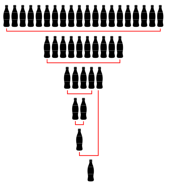 ๋ฌธ์ ๋ฅผ ํ๋ ์๋น์ด๋ ์ฝ๋ผ ๋ฌธ์ ์ ์๋ฒฝํ ํด๋ต์ ์ฐพ์์ต๋๋ค. ์๋น์ด๊ฐ ํผ ๋ฐฉ๋ฒ์ ์๋ ๊ทธ๋ฆผ๊ณผ ๊ฐ์ต๋๋ค. ์ฐ์ ์ฝ๋ผ ๋น ๋ณ 20๋ณ์ ๊ฐ์ ธ๊ฐ์ 10๋ณ์ ๋ฐ์ต๋๋ค. ๋ฐ์ 10๋ณ์ ๋ชจ๋ ๋ง์ ๋ค, ๊ฐ์ ธ๊ฐ์ 5๋ณ์ ๋ฐ์ต๋๋ค. 5๋ณ ์ค 4๋ณ์ ๋ชจ๋ ๋ง์ ๋ค ๊ฐ์ ธ๊ฐ์ 2๋ณ์ ๋ฐ๊ณ , ๋ 2๋ณ์ ๋ชจ๋ ๋ง์ ๋ค ๊ฐ์ ธ๊ฐ์ 1๋ณ์ ๋ฐ์ต๋๋ค. ๋ฐ์ 1๋ณ๊ณผ 5๋ณ์ ๋ฐ์์ ๋ ๋จ์ 1๋ณ์ ๋ชจ๋ ๋ง์ ๋ค ๊ฐ์ ธ๊ฐ๋ฉด 1๋ณ์ ๋ ๋ฐ์ ์ ์์ต๋๋ค. ์ด ๊ฒฝ์ฐ ์๋น์ด๋ ์ด 10 + 5 + 2 + 1 + 1 = 19๋ณ์ ์ฝ๋ผ๋ฅผ ๋ฐ์ ์ ์์ต๋๋ค.