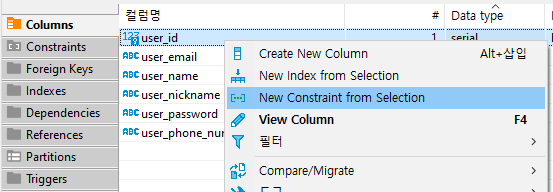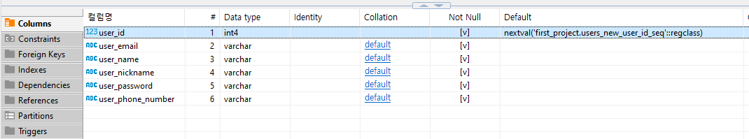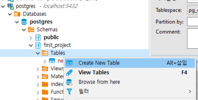이제 원하는 테이블 생성, 컬럼 생성을 해보자.