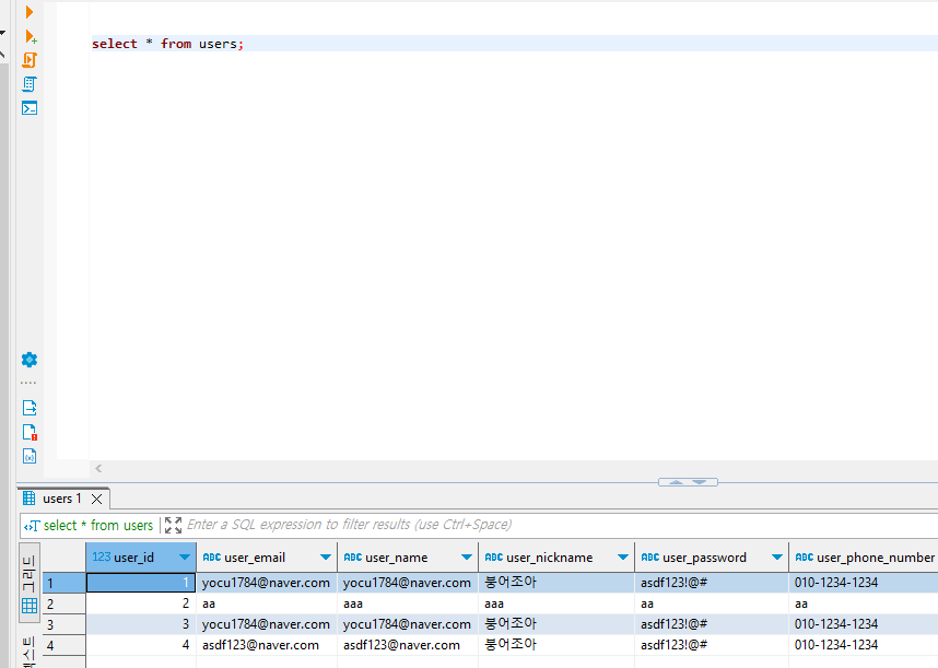 위의 방법이 자꾸 안되서, 테이블을 삭제하고 다른 방법으로 시도했다.