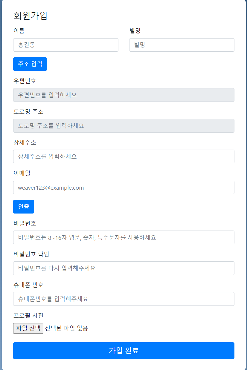 | 카카오 주소 검색 api 로 회원가입 시 주소 입력하기 & 에러 (0) | 2023.09.13 |