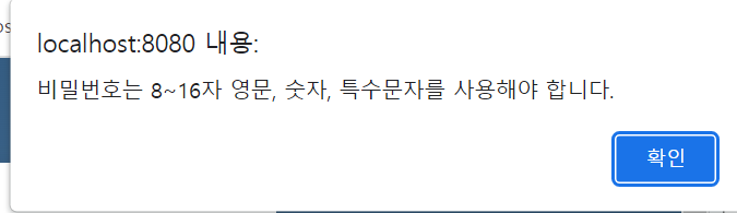 alert('비밀번호는 8~16자 영문, 숫자, 특수문자를 사용해야 합니다.');