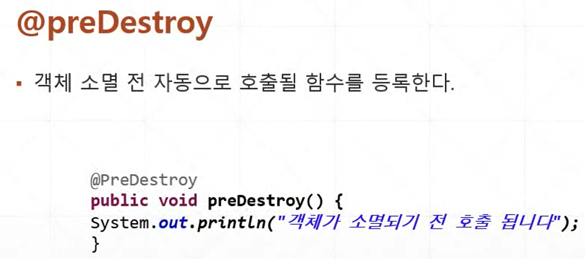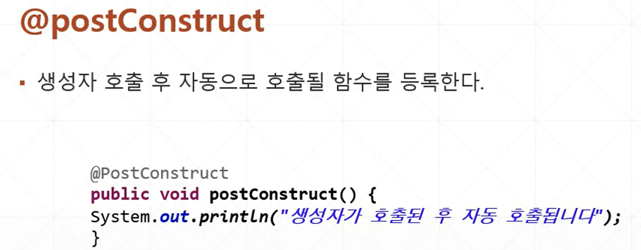 init-method 와 destroy-method 역할을 하는 것이 @postConstruct 와 @preDestroy이다.