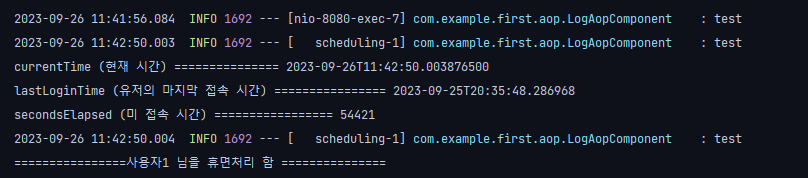 프로젝트 내 모든 메서드가 실행될 때, test 로그가 찍히는 것을 볼 수 있다!!!