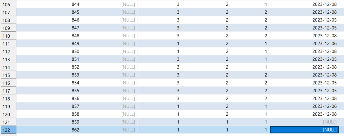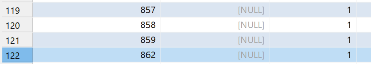 다시 깔끔하게 몇 row 만 남기고 테스트 하려고 했는데, 자동으로 증가하는 index값이 초기화가 되지 않았다.