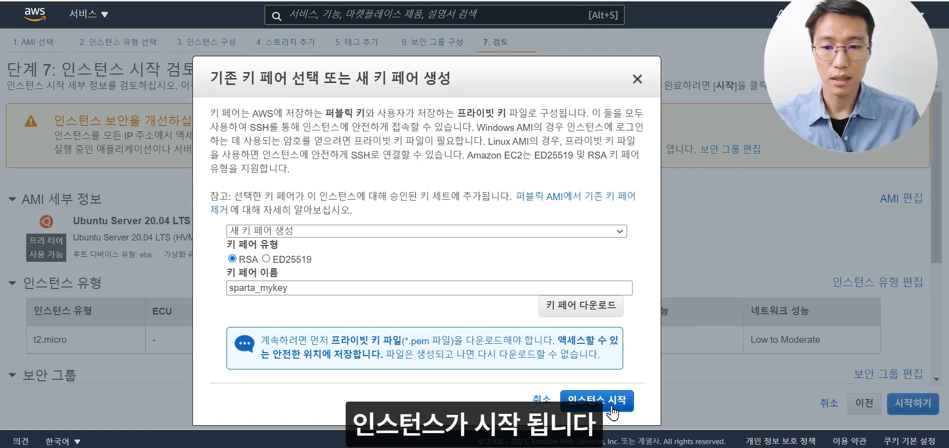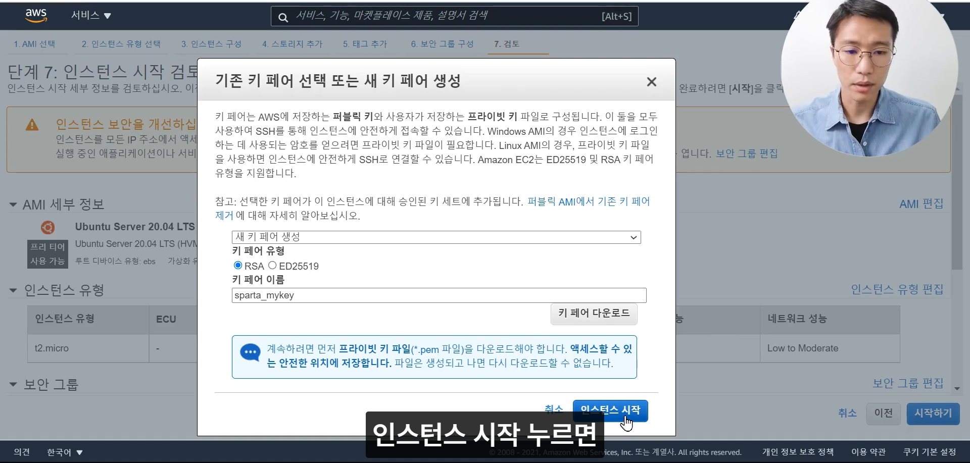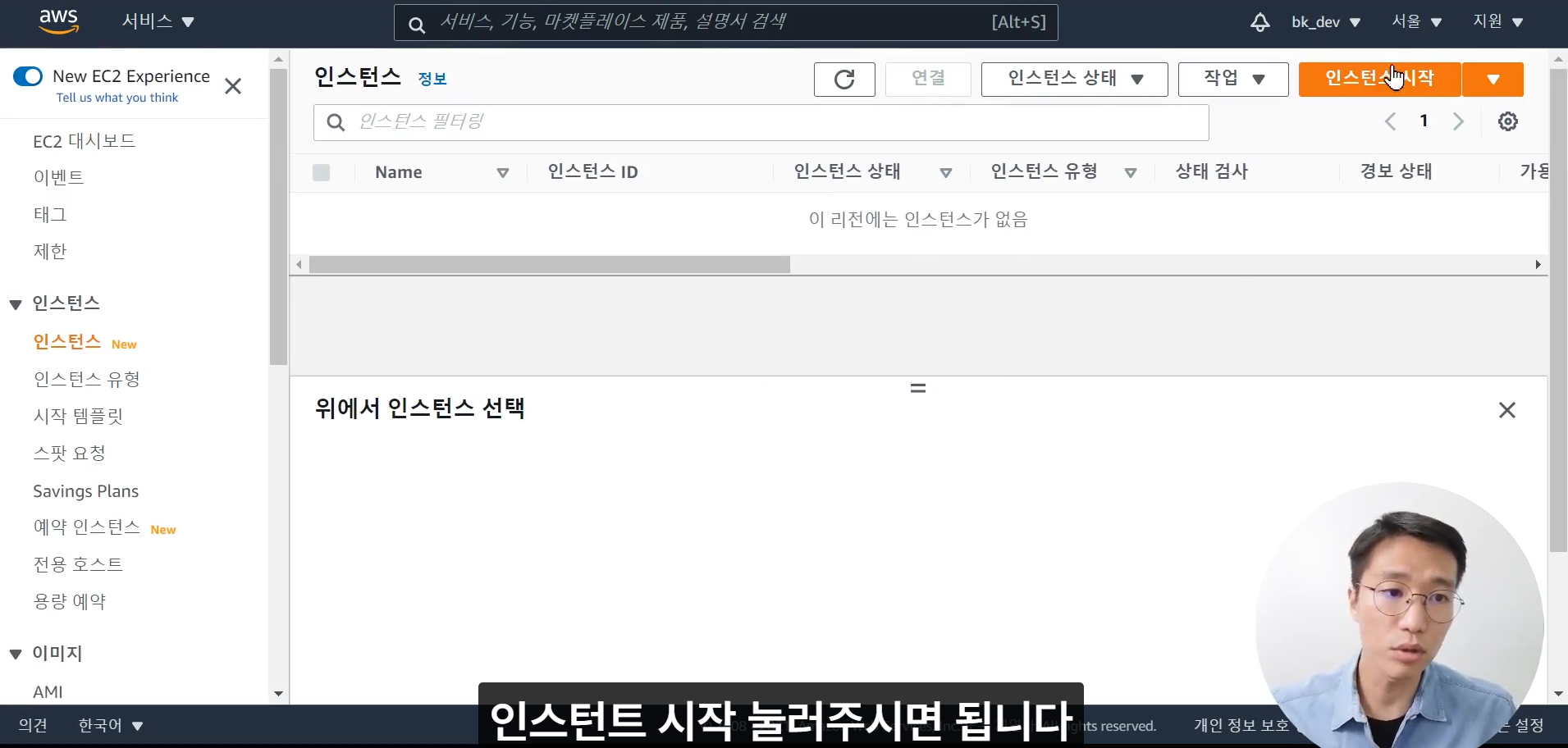 인스턴스 상태가 '실행 중' 으로 바뀌면 서버 컴퓨터가 켜졌다는 뜻이다.