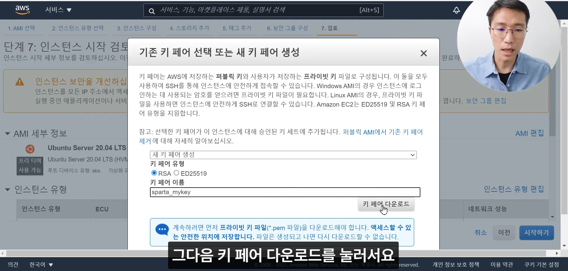 ssh(v)-i(v)[받은키페어](v)ubuntu@[내아이피]