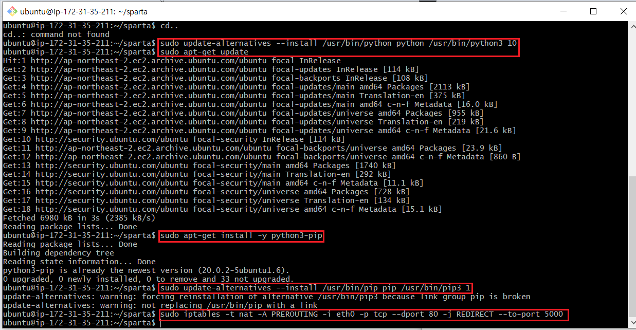 sudo apt-get install -y python3-pip (pip3 설치) - 5줄