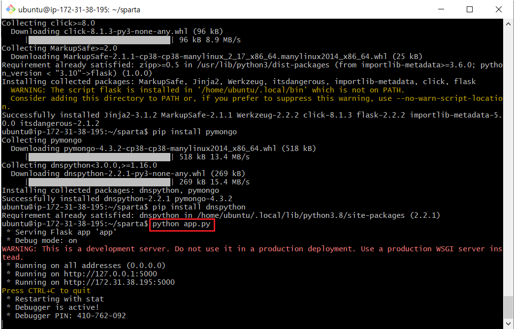 homework 폴더안의 static, templates폴더, app.py파일을 EC2인스턴스의 sparta폴더에 드래그 앤 드롭 한다.