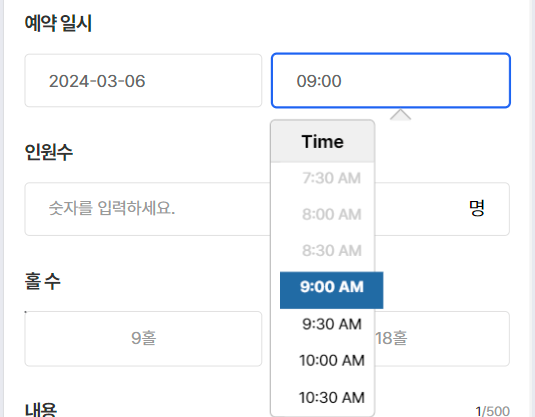 - 30분 단위로 선택하도록 할 것