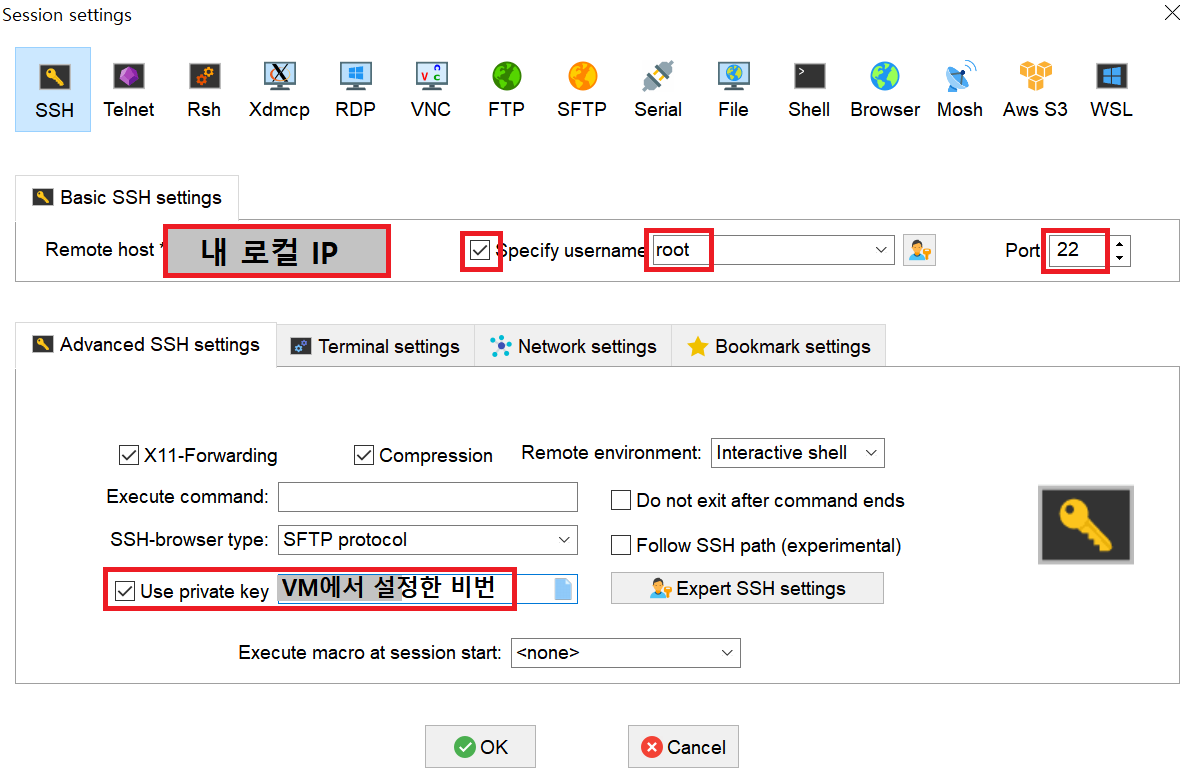 SSH를 통해 접속 프로그램(MobaXterm 등)으로 원격 접속해서 편하게 작업하려고 한다.