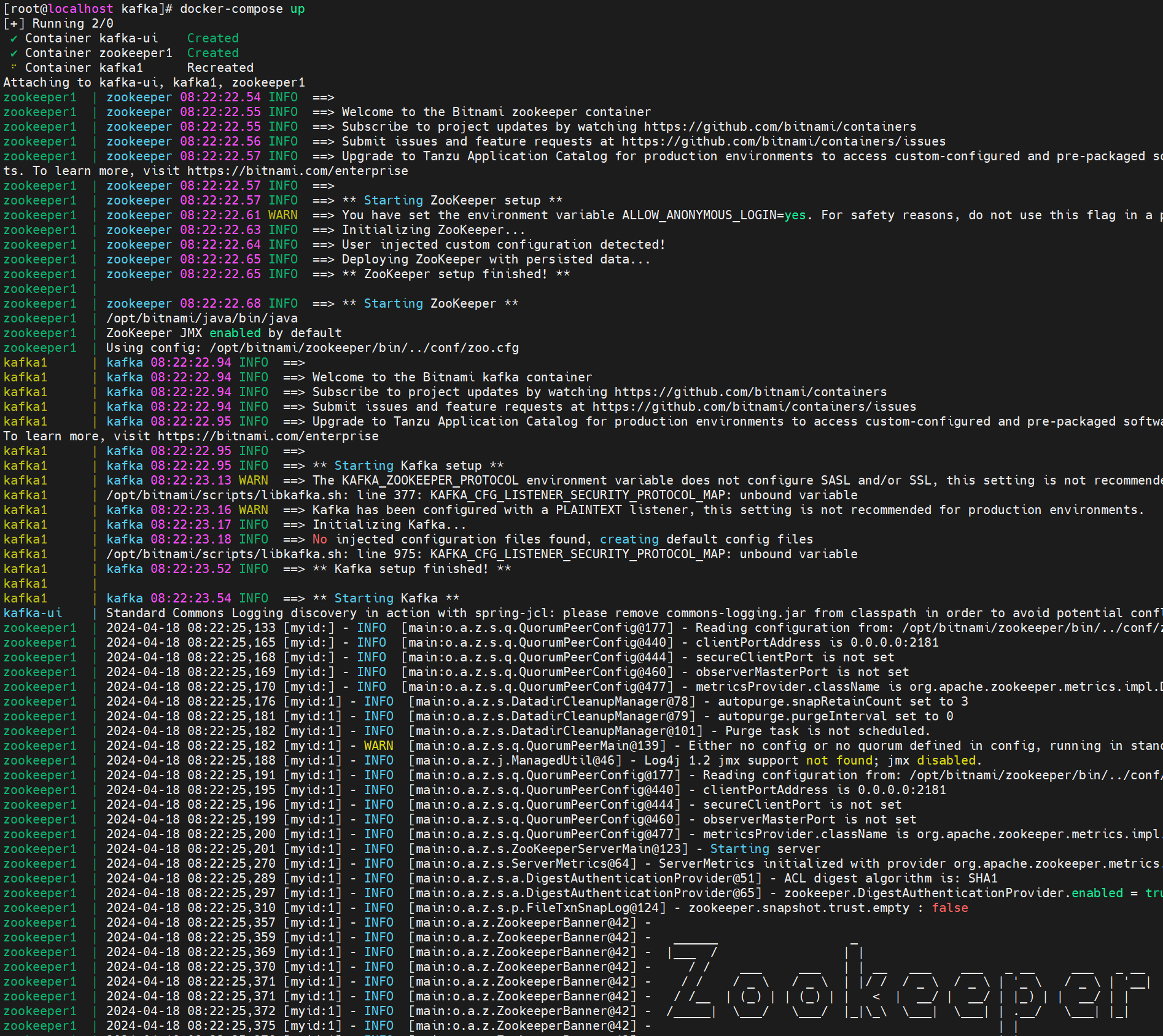 아래 명령어로 실행 확인 하면, 내가 설정한 카프카1, 주키퍼1, 카프카UI 컨테이너 3개가 잘 실행이 되는 것이 보인다.