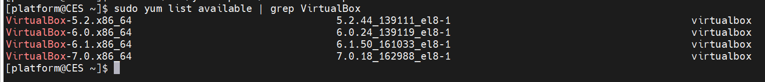 sudo yum list available | grep VirtualBox