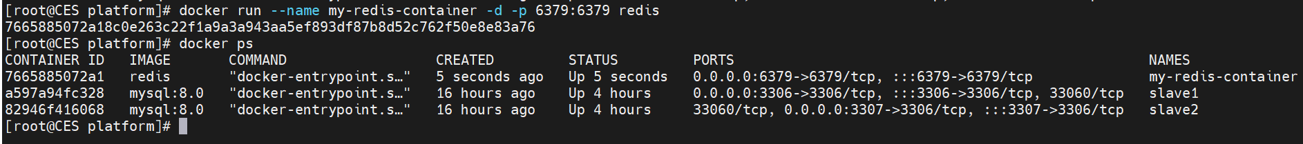 docker run --name my-redis-container -d -p 6379:6379 redis