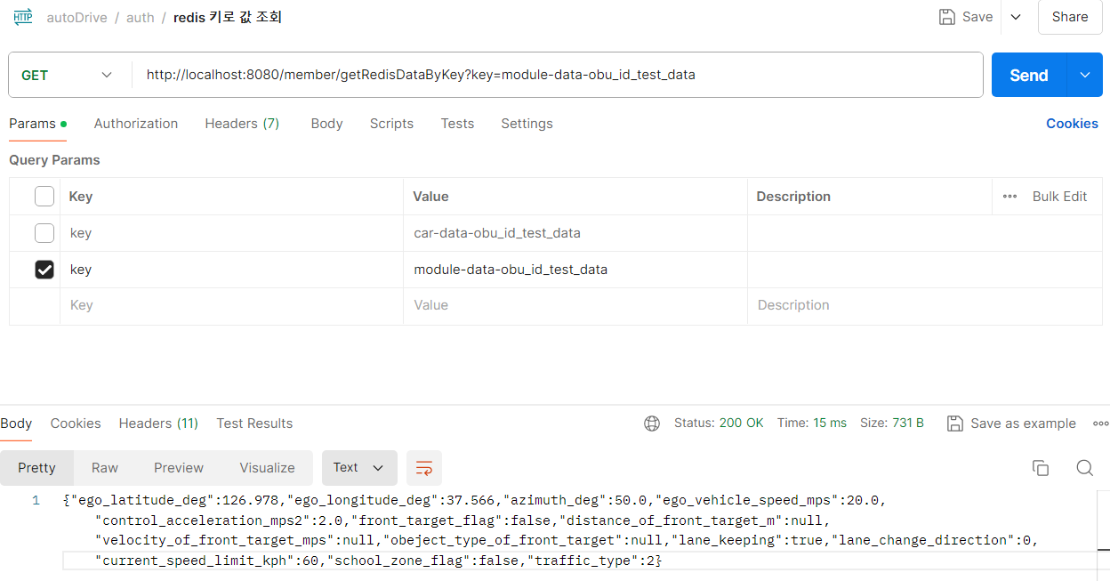 kafka 프로듀서로 데이터를 보내고, 키 값으로 조회하는 호출을 postman 으로 해보았다.