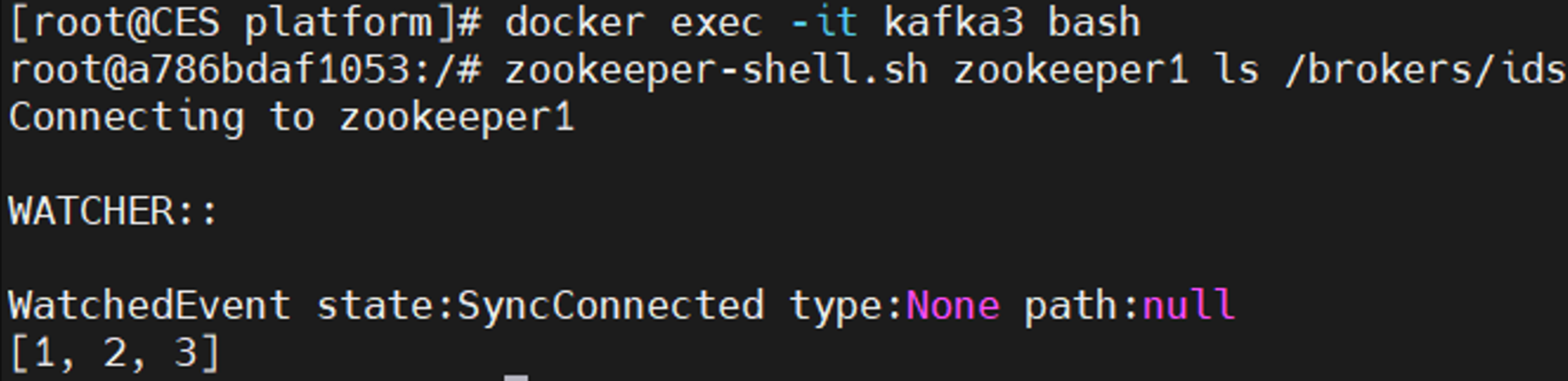 zookeeper-shell.sh zookeeper1 ls /brokers/ids