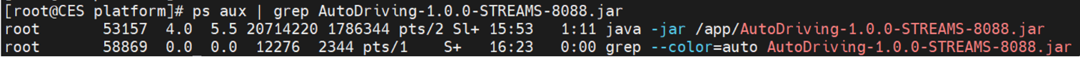 ps aux | grep AutoDriving-1.0.0-STREAMS-8088.jar
