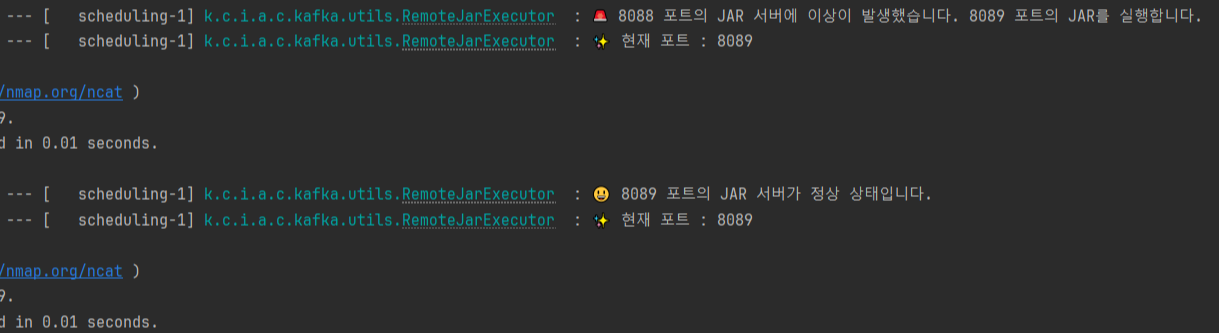 log.warn("🚨 {} 포트의 JAR 서버에 이상이 발생했습니다. {} 포트의 JAR를 실행합니다.", currentPort, newPort);