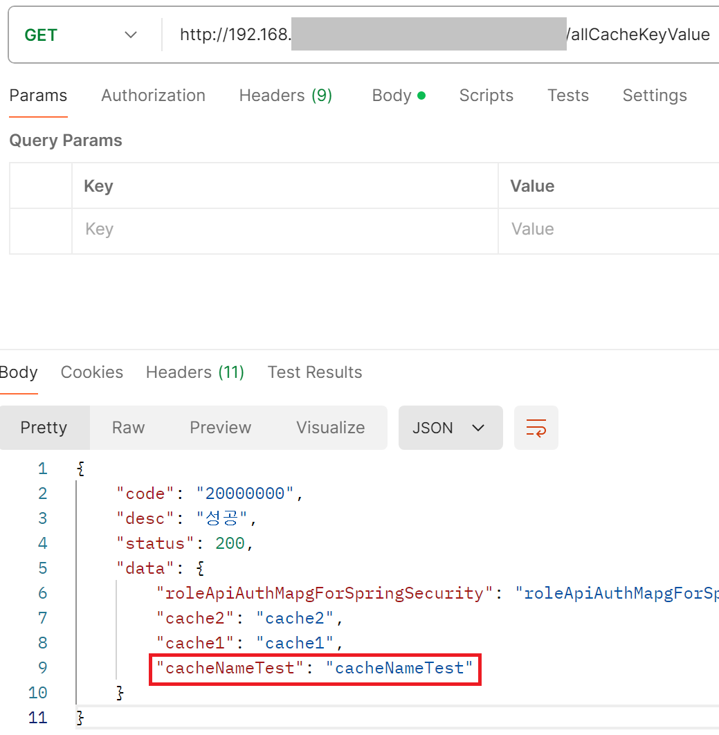 @Cacheable(value = "cacheNameTest") // 🎯 추가 !!