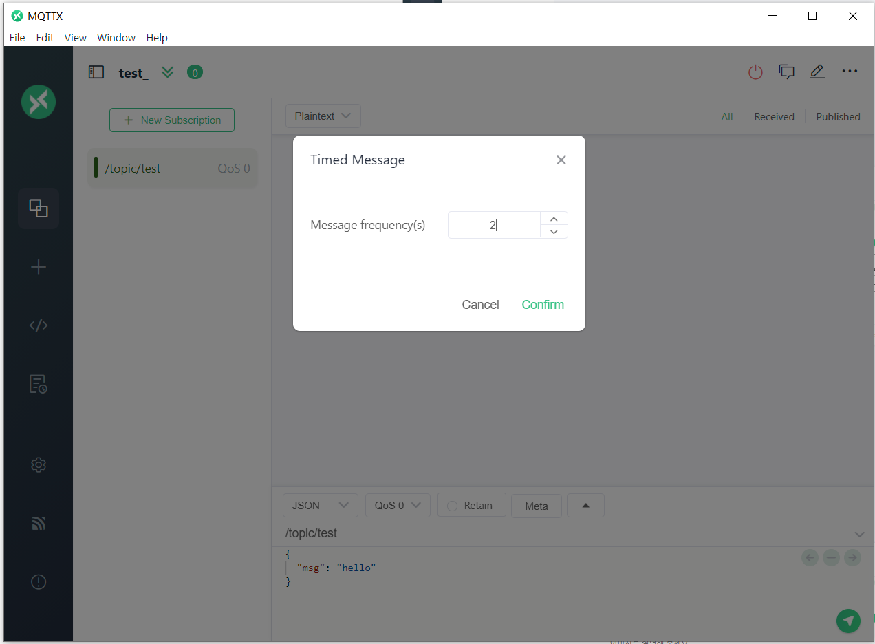[MQTT] MQTTX 사용해서 일정한 주기로 웹소켓 메시지 전송하기 본문