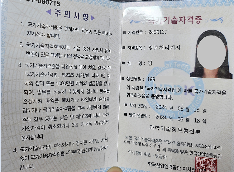 백엔드 개발자로서 업무 능력 향상을 위해 정보처리기사 시험을 응시하게 되었고, 합격권의 점수를 받아 합격하게 되었다.