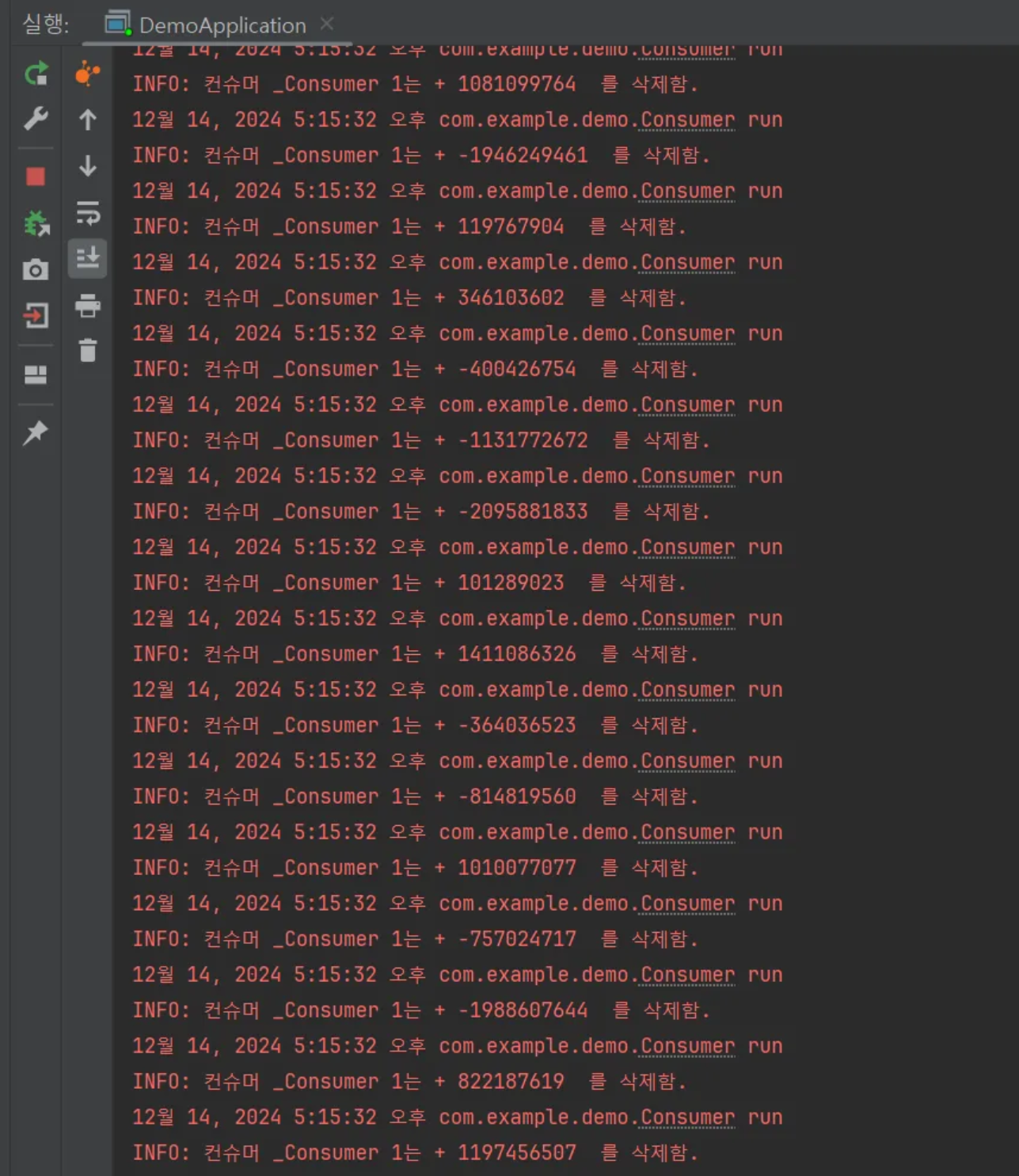 컨슈머 스레드는 리스트에 값을 삭제한다.