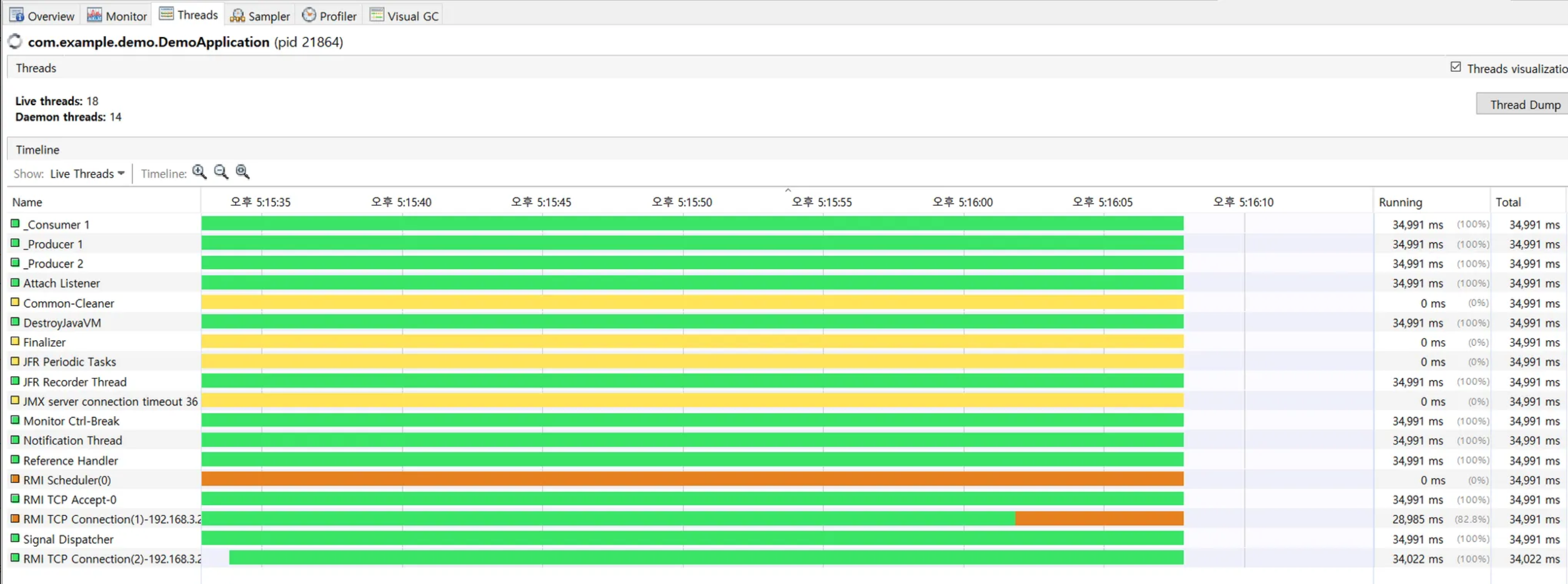 쓰레드 모니터링에서도 맨 위부터 4개가 정상적으로 번갈아가며 실행 중이다.