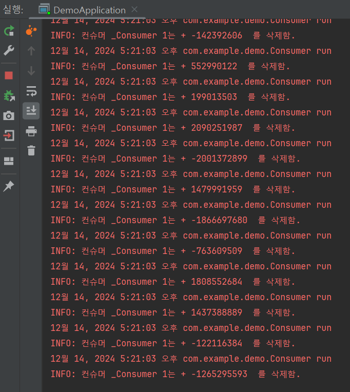 log.info("컨슈머 "+Thread.currentThread().getName() + "는 + " + x +" 를 삭제함.");