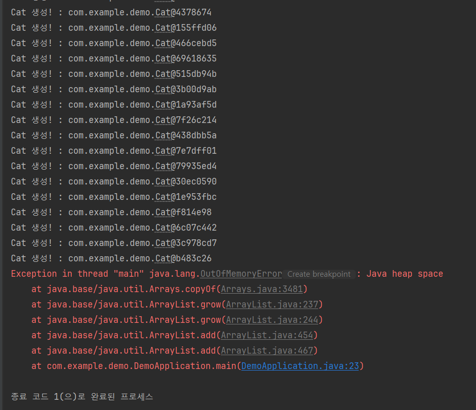 OOM 에러 유발 코드
