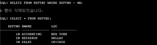 SQL> DELETE FROM DEPT02 WHERE DEPTNO = 40;