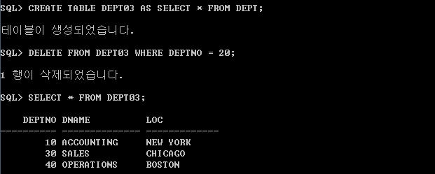 SQL> DELETE FROM DEPT03 WHERE DEPTNO = 20;