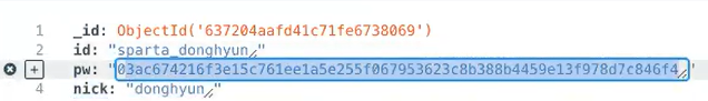 디비에 이렇게 저장된다. 암호화를 한 값은 해커가 가져가도, 이 암호가 어떤 비밀번호인지 해석할 수 없다.