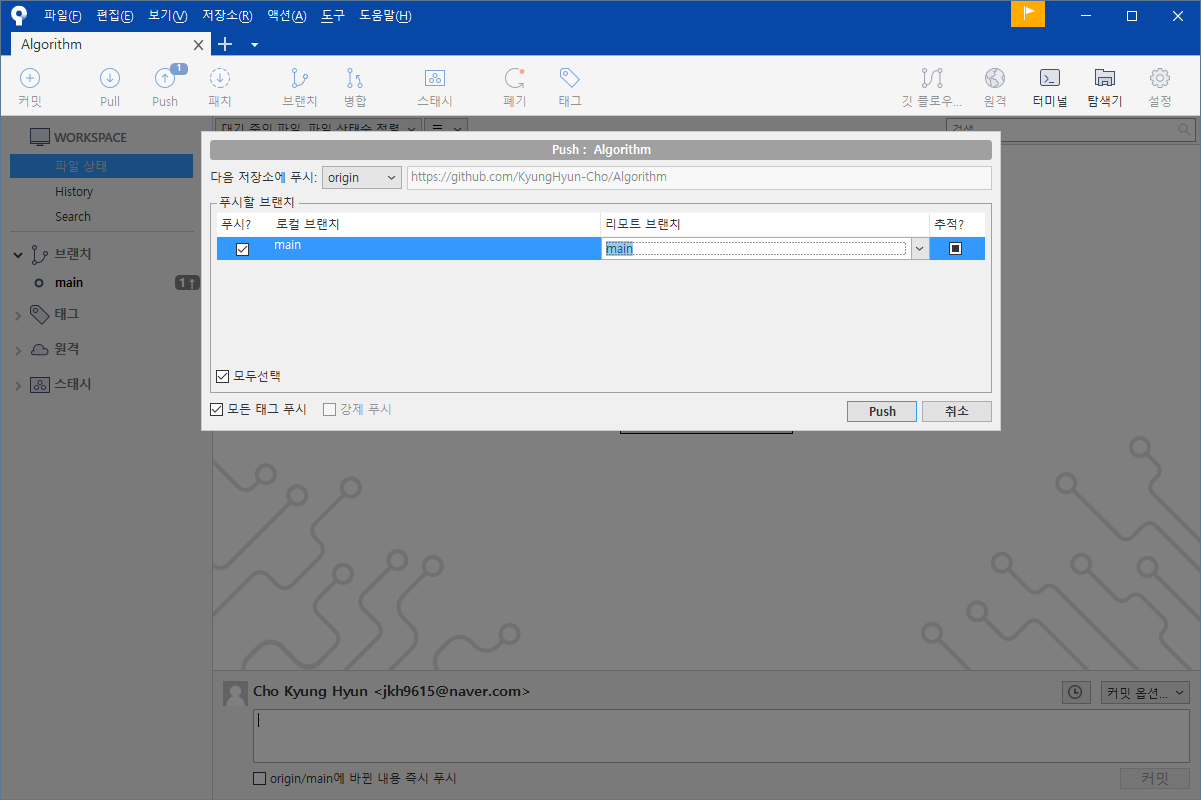 커밋 - 선택해서 파일 스테이지로 올려주고 - 코멘트작성 - 커밋 - Pull!